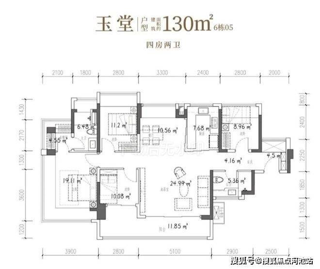 104-107㎡的4房2厅2卫,折后总价490-530万/套,单价4.62-5万。