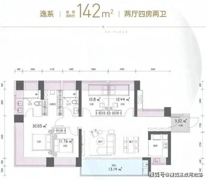 约119㎡ 4房2卫高能户型,单价区间:5-5.29万/㎡