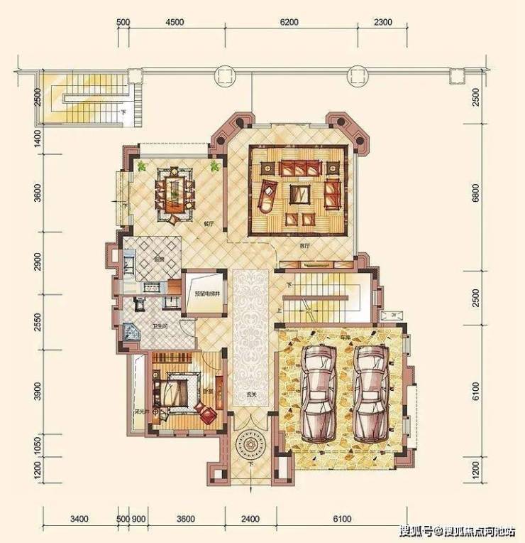 D1户型,双拼别墅,5房3厅6卫,超大空间,观影、品茶、健身,自由挥洒,奢阔的地下拓展空间足以纳藏全家爱好。