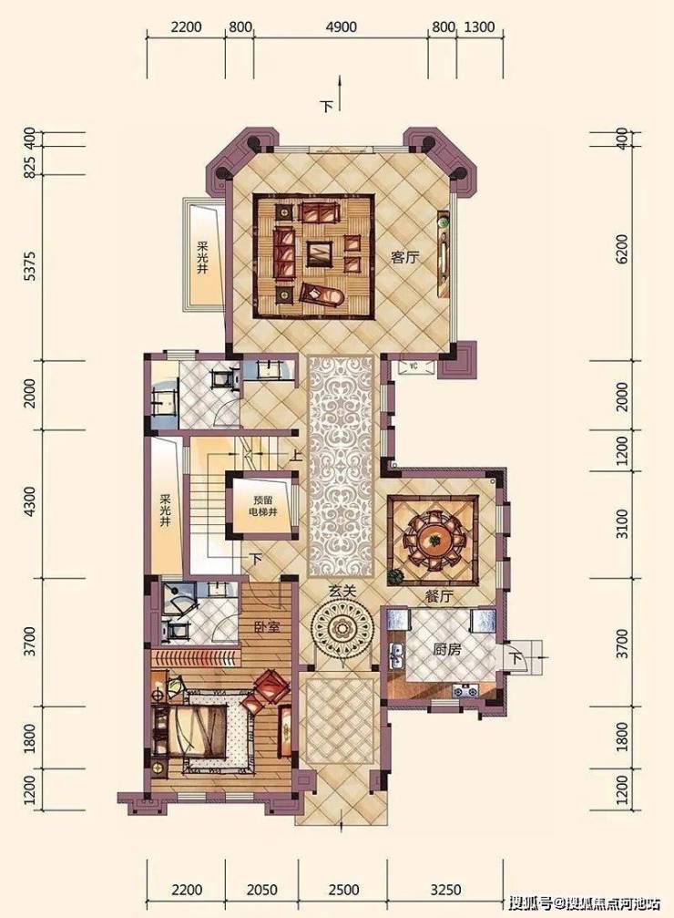 C2户型,联排别墅,5房2厅4卫,三庭院设计,5.4米开间,3.8米高大客厅,煊赫贵族气度。