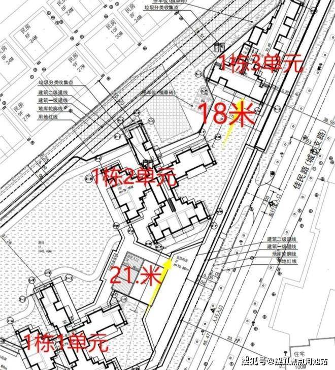 从楼栋的分布看,1栋2单元84平主卧到隔圳新村的间距是16.2米,1栋3单元有37米,3单元到金地上塘道二期是28.9米,1单元的78平离金地上塘道二期也有33米,这个距离还包含了佳民路本身的路宽,所以都算是“握手楼”的范畴,站在马路上就能看见里面的阳台和窗户。
