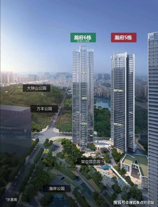 天作一半,人造一半。万丰海岸城瀚府5栋位居万丰城市更新项目的中央位置,周边的商业、产业、教育、景观、生态资源如众星捧月般围绕其铺展开来。