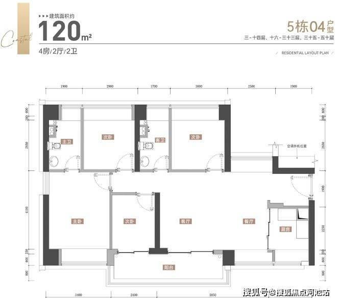 户型设计上,瀚府5栋本批次推出3种户型,皆为宽景大阳台四房,每层四梯五户,加上约3.1米层高,引人瞩目。