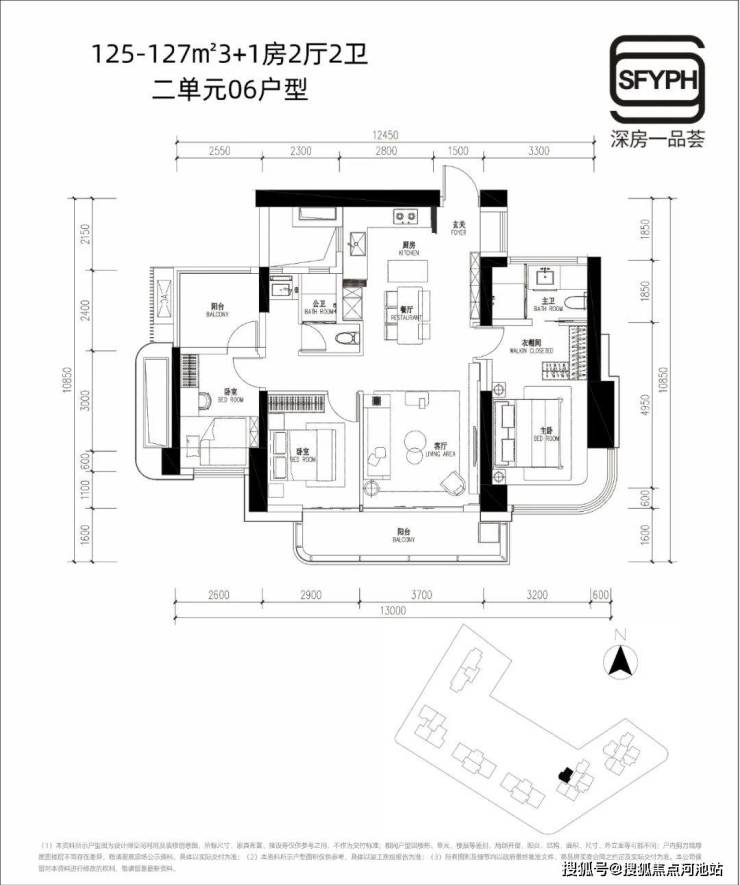 约123-126㎡3+1房2厅2卫,通透横厅设计,7m多餐客厅开间明亮大气,缺点在于主朝向在西北、小阳台做个房间使用又太小