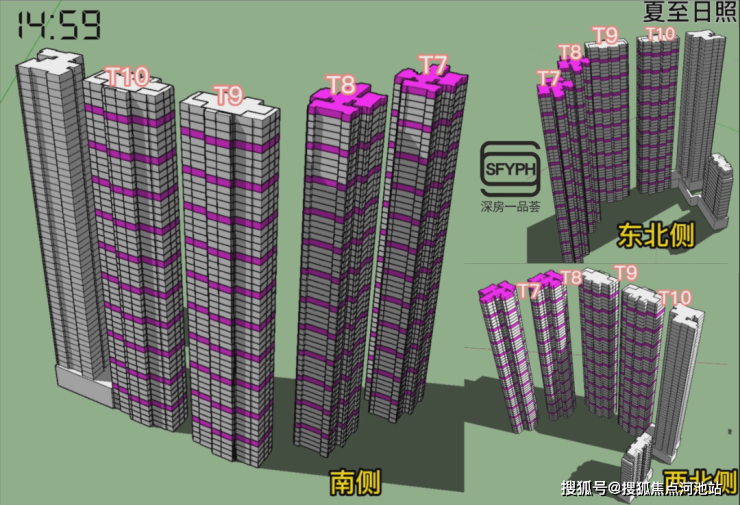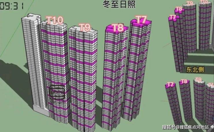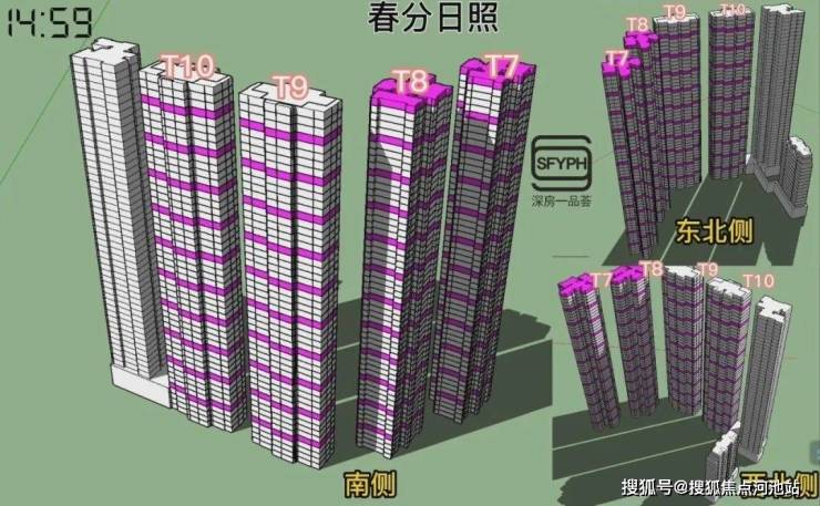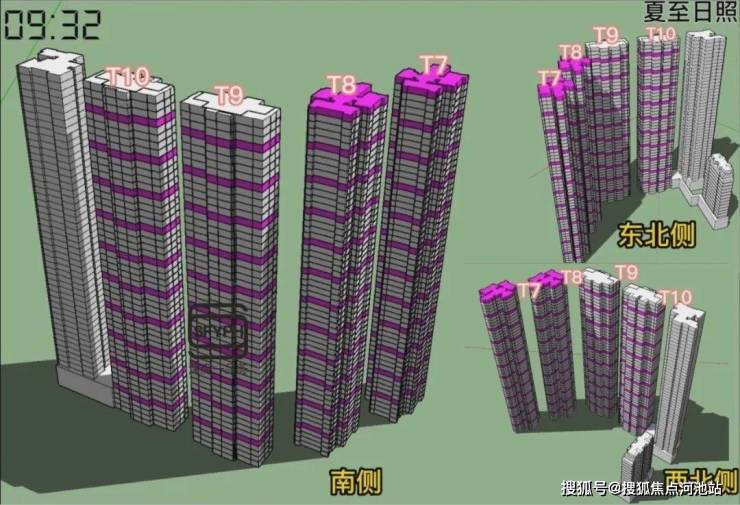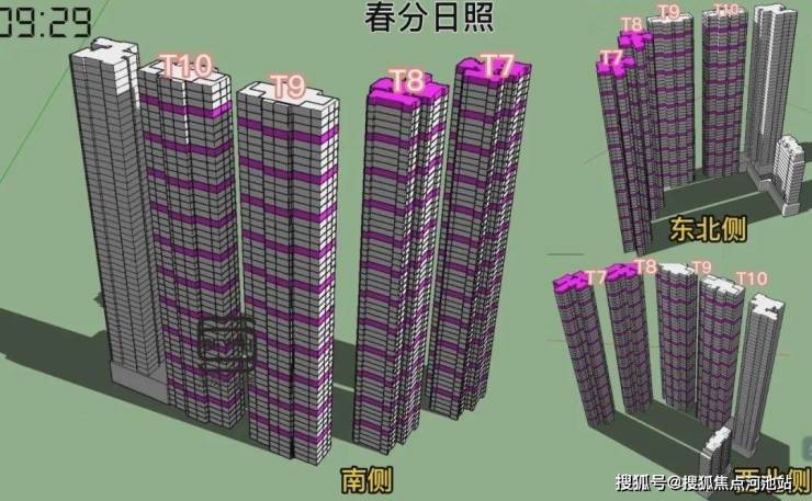 金地环湾城采用的是半围合适布局,楼层的高低及朝向不同,日照时间差距较大