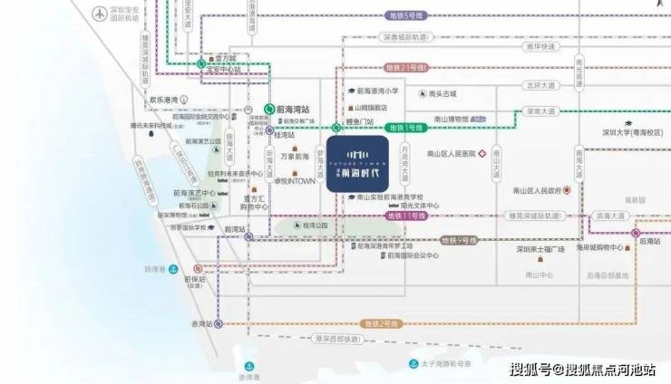 枢纽规划:毗邻在建的前海国际枢纽中心(地下6层),未来汇聚3条地铁(1/5/11 号线)、2 条城际线(穗深城际、深港西部快线),并规划深珠城际。