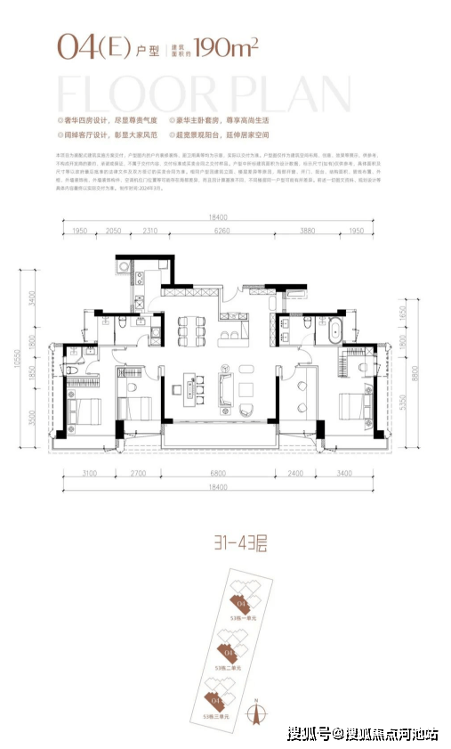 同步推出的13套190㎡四房三卫,则是为追求更阔绰空间与尊崇体验的塔尖人群量身定制: