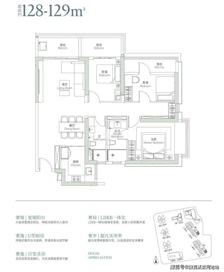 户型出色:120㎡ + 能做四房三卫双套间,公区品质佳,设计合理实用。