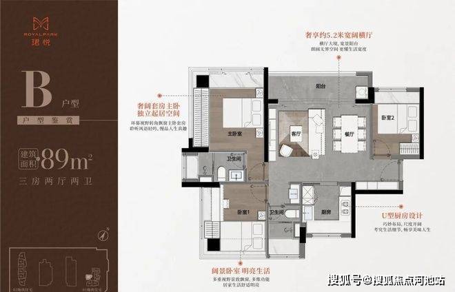 【建面89㎡3居】626-672万,3室2厅2卫, 南朝向,楼栋分布于2栋1单元