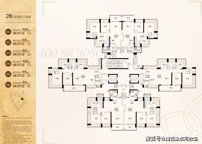 下面是1/2栋的楼栋平面图:
