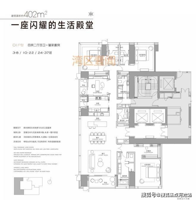 联泰超总湾项目是由4栋51至63层3.6-3.9米层高的纯居住奢装交付地标、两栋4.5米层高的小高层,35栋独栋,全景幕墙、宽景阳台。