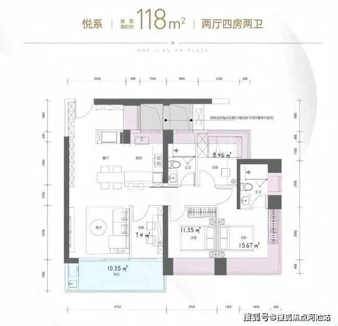 这次推出的户型最大的亮点是面积约98㎡把得房率做到3+1房2卫。