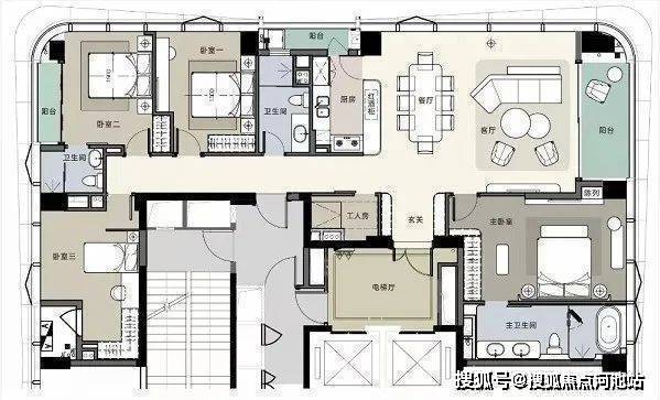 太子湾·鲸域作为公寓产品,具备了十分完善的居住功能,阔绰全功能主卧套间+父母套间(客人套间)+小孩套间+工人房,家族大宅的尊崇顶配,使产品的豪宅属性提高了一个档次。