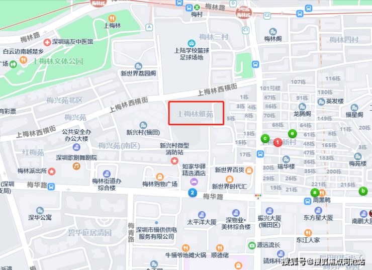 上梅林雅苑,位于兴梅二巷新世界家园西北侧约50米,含3栋高层住宅,项目规划786套住宅,其中可售房源704套,另外82套为回迁房。