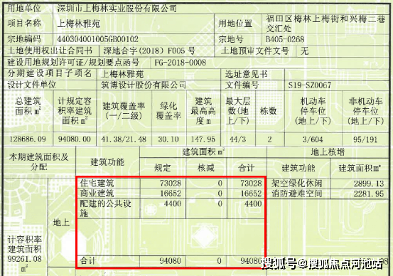 用地面积约1.4万㎡,总建筑面积约12.8万㎡,容积率6.65。其中,计规定容积率建筑面积94080㎡,含住宅73028㎡、商业16652㎡、公共设施4400㎡。