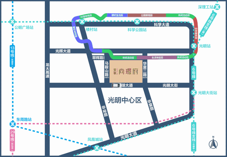 项目背靠约208万㎡科学公园(直线距离约100米),总投资7.2亿元。将规划集生态、科普、健康、娱乐、运动、休闲、游览等功能为一体的大型综合性城市公园。项目周边更有多个公园,整个光明区域绿地覆盖率高达53%,人均公园面积超18㎡。