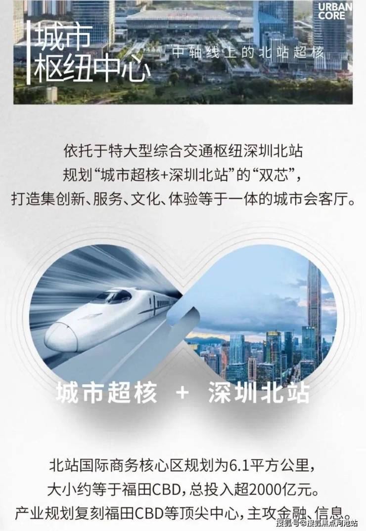深圳北站总部基地作为七大总部基地之一,2000 亿巨资投入,以高标准缔造深圳中芯,形成多元复合的国际会客厅,在北站总部基地升级后,以城市超核为中心,打造全新体验的城市新封面,成就湾区未来枢纽超级地标。