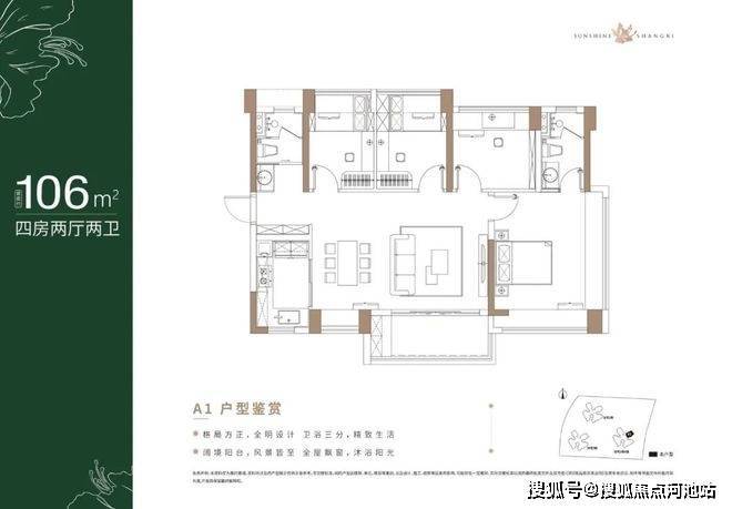 106㎡的4房2厅2卫,折后总价315-335万/套,单价2.97-3.16万/㎡。