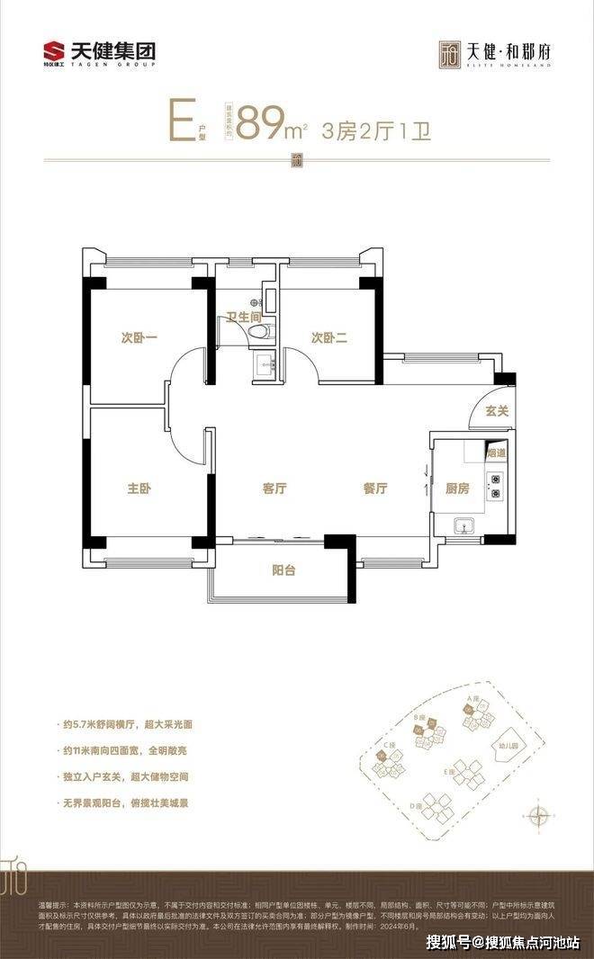 深圳宝安天健和郡府 全南向户型设计 89㎡三房带飘窗通透感拉满