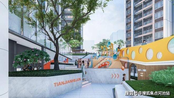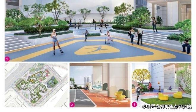 通过低区公共绿化,中区屋顶花园和丰富的架空活动空间,以及高区空中花园的多层级园林打造。打造屋顶花园、空中花园、亲子互动乐园、景观台阶、阳光草坪、架空层健身区等六大区域。