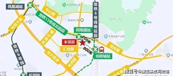 中建观玥项目位于光侨路与观光路交汇,位于6号线光明城站和13号线德雅路站(原同观路站)中间,到两个地铁站的距离步行时间都在2-8分钟的距离。