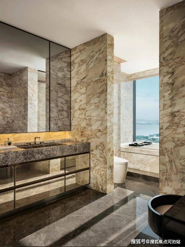 全球多达6种的稀贵奢石装点着室内,大面积、流动纹路的天然石材运用更是给人“一入户就震撼”的视觉冲击。土耳其古堡灰、意大利威尼斯棕、意大利鱼肚金和迪奥金……让室内成为一座奢石博物馆。
