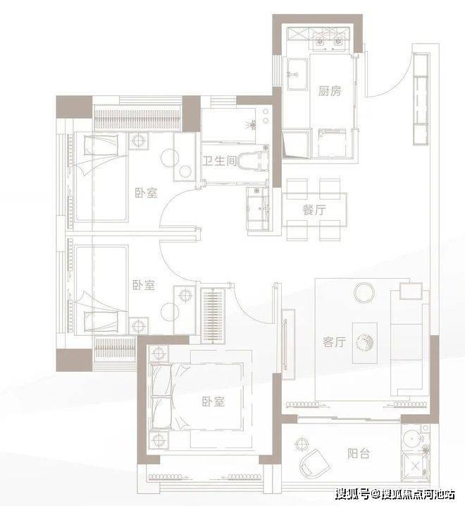 面积:79-85㎡3房1卫,91-95㎡3房 2卫,125㎡4房2卫