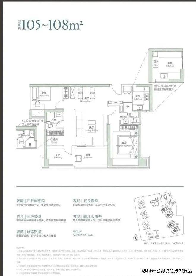 产品本身亮点十足,作为新规大宅,主推建面约105-280㎡三至六房,实用率高达92%-115%。户型设计堪称惊艳,107㎡户型做到四开间朝南、双龙抱珠格局,122㎡以上户型普遍采用LDKB一体化设计,搭配宽境阳台,采光通风俱佳,大户型更是配备多套房与阔绰方厅,满足多代同堂或高端社交需求。项目由美国DK、香港CCD等全球顶尖设计团队联袂打造,规划三层垂直主题园林与十九境架空层会所,五星级酒店式公区与金普顿奢华酒店加持,居住质感拉满。