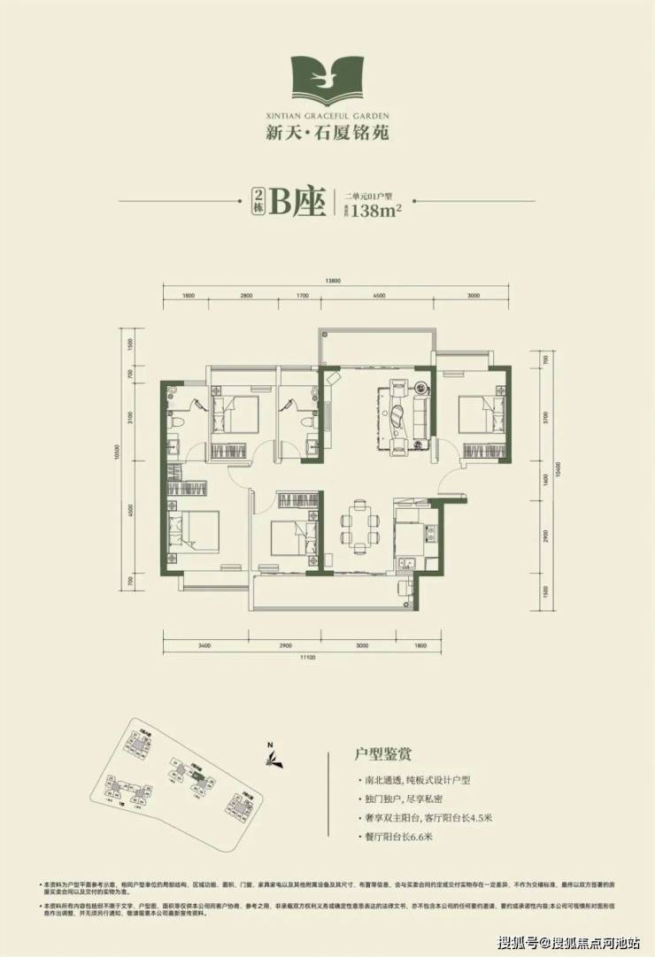 2栋B座一单元01、04户型、2栋B座二单元01户型:面积约为137-138㎡的4房2厅2卫;