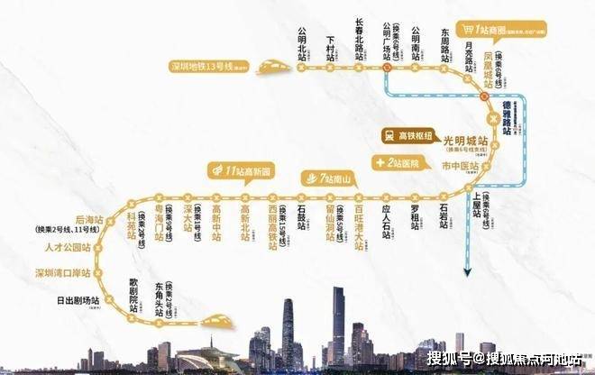 ★观玥名邸家门口就是13号地铁线“德雅路站”,以前的同观路站已经改名,最高时速100公里,预计2025年开通运营,1站可到光明城站,换乘6号线/光明城高铁站,3站可到石岩,7站到西丽,8站到留仙洞总部基地,11站到南山高新园。