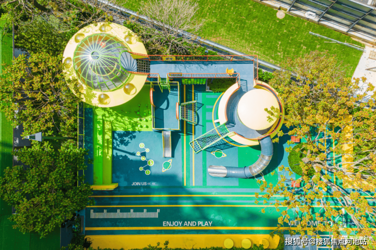 星际主题的儿童乐园配色鲜亮养眼,充满童趣,孩子们下楼就可尽情玩耍放电。