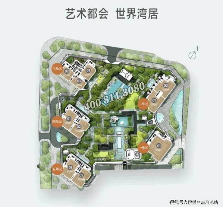 住宅由5栋43-51层超高层住宅组成,其中1栋一单元43层、3梯1户;二单元47层、5梯2户;三单元51层、4梯3户;四单元45层、3梯2户;五单元43层、3梯2户!