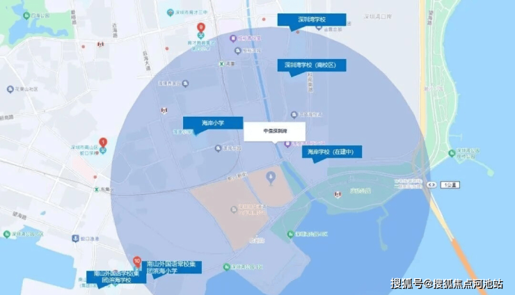 在建海岸学校(54 班制,投资 4 亿),1公里内深圳湾学校、南山外国语学校,解决顶豪家庭教育焦虑