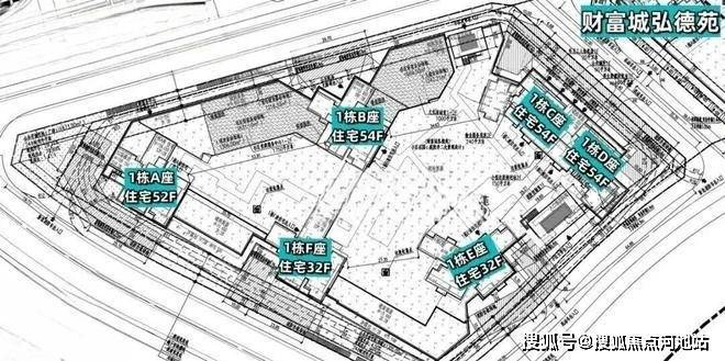 财富城弘德苑,总占地面积约2.16万㎡,总建筑面积约18.1万㎡,计容建筑面积约14.2万㎡,容积率6.58,绿化率35%,共规划5栋6座32-54层高的住宅,其中1栋A座住宅52F,1栋B/C/D座住宅54F,1栋E/F座住宅32F,规划有7050㎡商业。
