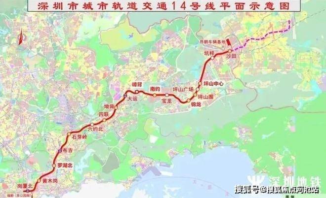 14号地铁线“坪山广场站”距离约400米,该线路设计时速120公里,6站到龙岗大运,11站到布吉,12站到罗湖,14站到福田岗厦北,从坪山广场站-福田岗夏北车程50分钟;