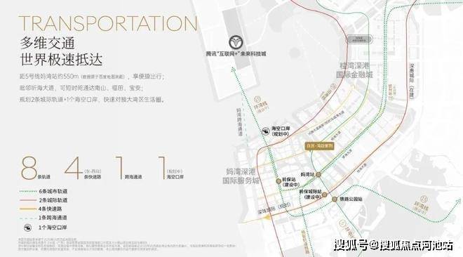交通:距5号线妈湾站约550m,毗邻听海大道,可快速通达南山、福田、宝安及大湾区生活圈。规划8条轨道(城际+城市)、4条快速路、1条跨海通道、1个海空口岸。