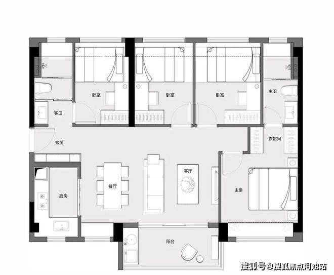 【D户型 |建面约113㎡四房两厅两卫】