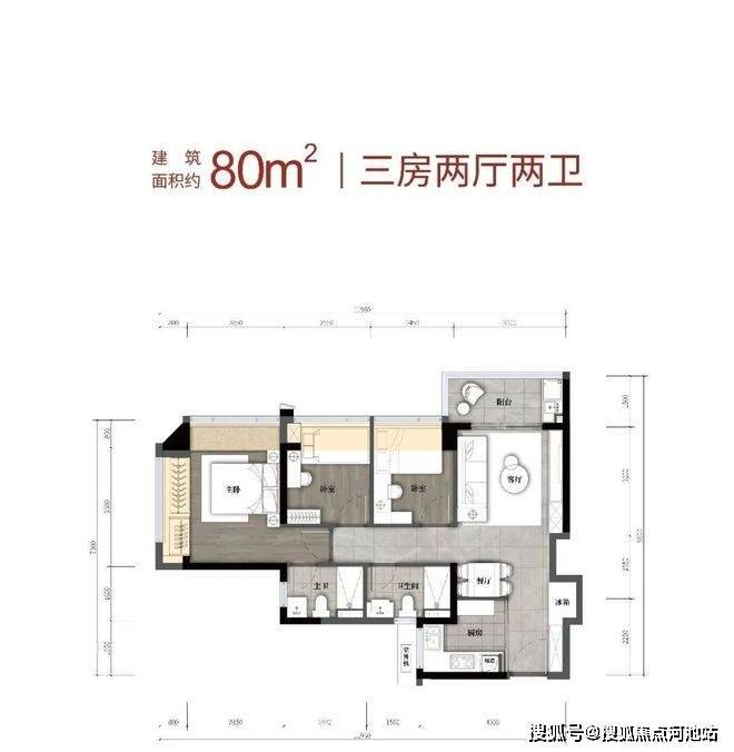 80㎡3房:总价291-315万,单价3.64-3.94万/㎡;