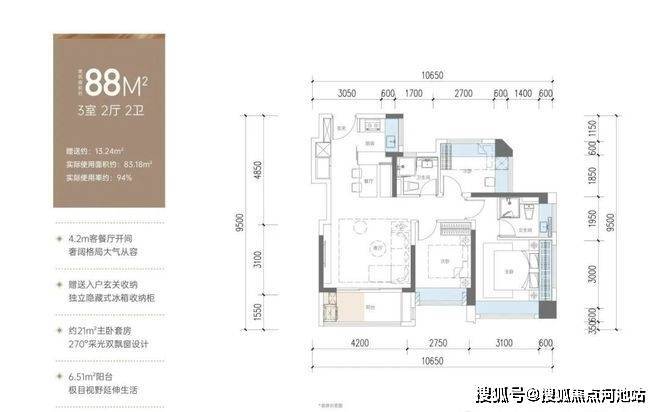 88㎡的3房2厅2卫,折后总价在245万起,单价约2.78万/㎡。
