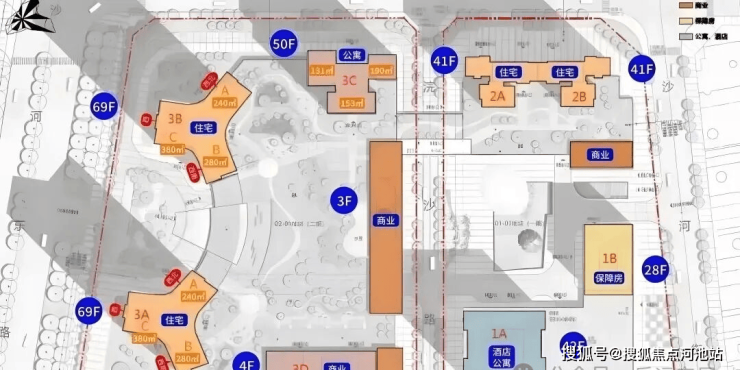 总栋数:8栋(1A栋42层酒店+公寓、1B栋28层保障房,2栋1/2单元41层住宅,3A/3B栋69层住宅;3C栋50层公寓、3D栋4层公寓)