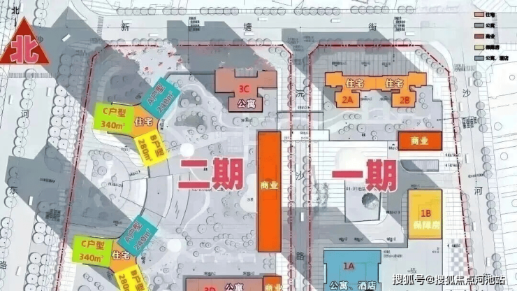 整个项目分两期开发建设,其中:项目一期东地块包含1栋酒店+商务公寓、1栋保障房、2栋包含一、二单元的住宅;西地块包含2栋高约250米的超高层住宅,另有1栋约50层高的商务公寓。