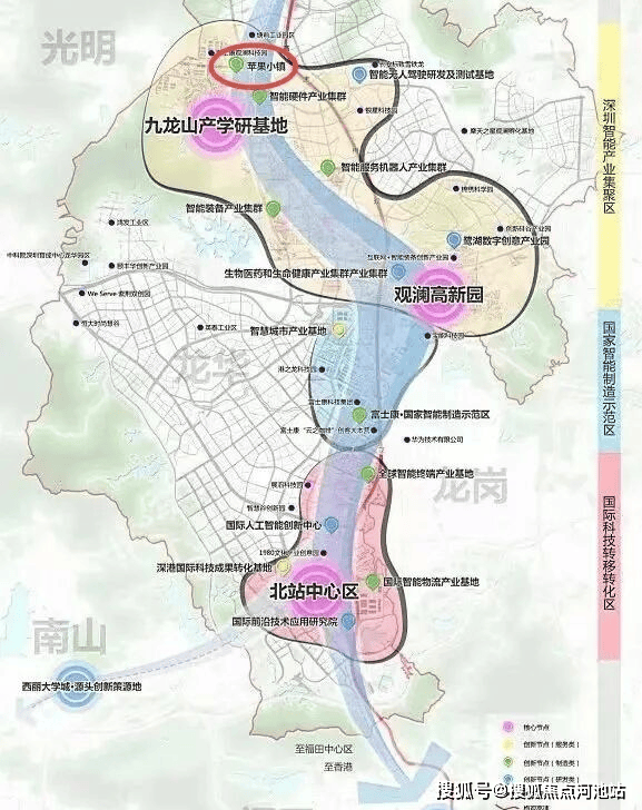 科技产业基地(在建中)、富士康、迈瑞(在建中)、硅谷动力等众多名企进驻,带动片区产业迭代腾飞。