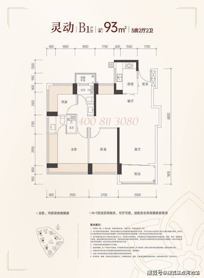 产品方面,大户型产品都用上了南北双阳台设计,主卧沿用新规270°大飘窗,连小户型儿童房也用上双飘窗,通风采光效果绝佳,预计得房率高达100%。其中93㎡可以改3+1房