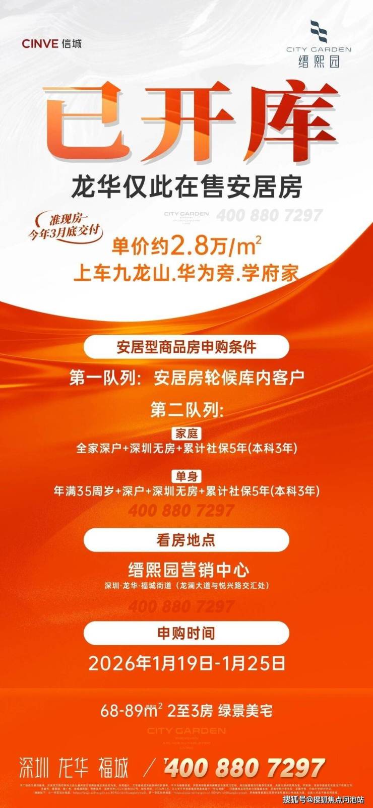 申请认购时间为:2026年1月19日18:00至2026年1月25日18:00。除了第一队列,本次对轮候库外第二队列也开放配售,此前具备资格但不在轮候库的朋友也能买了。【第二队列资格要求:全家深户、在深圳无自有住房、缴交社保满5年(本科3年)、5年内无房产转让记录】。