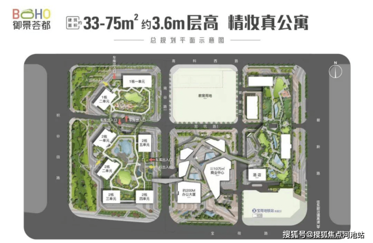 京基御景荟都,项目地址位于深圳龙岗区宝龙街道南约社区,临近地铁14号线宝荷站(在建),总占地8.53万㎡,总建筑面积约68万㎡,规划有2520套公寓,960套办公。公寓方面,产品为建面约33-75㎡ 、层高约3.6m精妆真公寓,通燃气带阳台;梯户比为8梯24户,4梯16户。项配建有约10万㎡商业,约8万㎡生态园林。