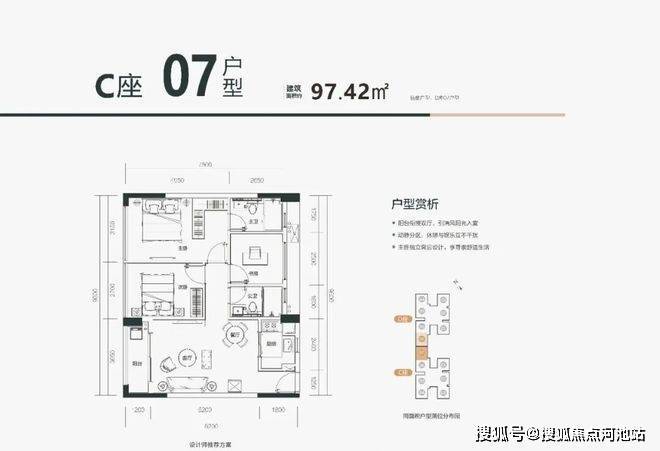 C03户型:约86㎡全能大三房,南北通透 + 全明格局