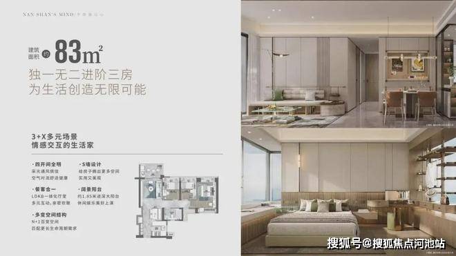 A户型:83㎡3房2厅1卫