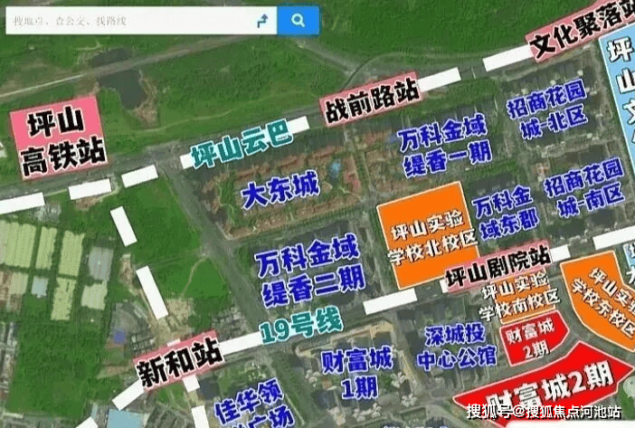 财富城2期所在的区位是整个坪山最核心的地段,汇聚了高铁+14/16号线双地铁+坪山实验学校+坪山中心公园+坪山天虹商场+坪山区政府+坪山体育中心+坪山图书馆,文艺馆等等,所有的市政配套基本都集中在这里,并且财富城2期也是该核心区域内唯一在售的新盘。