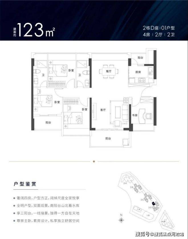 79-126㎡3-4房,满足不同人居需求,以人为本设计,户型方正、格局合理、全明设计、通透采光俱佳,引清风入室;高层瞰景,享受山水佳境与城市繁华融合的多维景观视野。