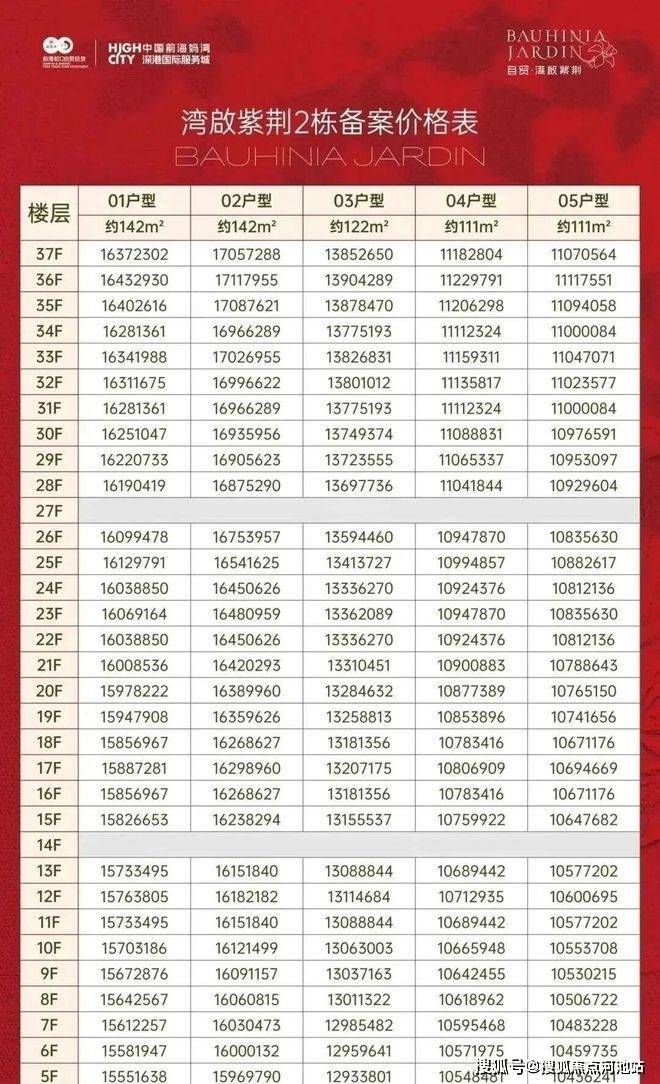 官网发布【自贸.湾啟紫荆】总价949万起,面积约96-142平精装4房2卫,得房率近100%,5号线妈湾站